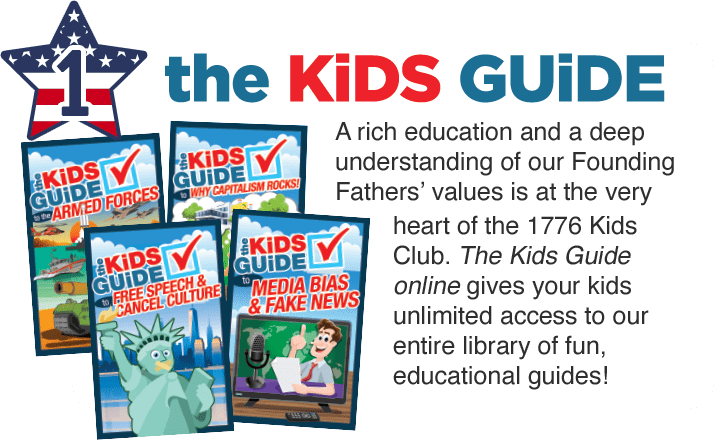 *With this special offer you can help your child understand the spirit of 1776 and our Founding Fathers’ vision for America. Along with your order, we’ll activate your child’s membership in the 1776 Kids Club. We’ll also send a new title from the Kids Guide every three to four weeks for only $17.76 with free shipping! There’s no obligation to buy anything you don’t want, and you can easily cancel at any time. Plus, every purchase is backed by our 100% satisfaction guarantee. And, as long as your account remains active and in good standing, your child will continue to enjoy FREE membership in the 1776 Kids Club!