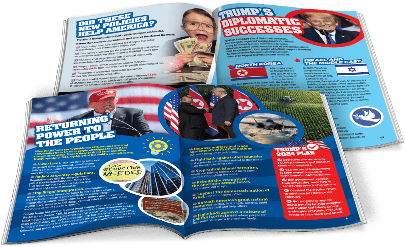 The mainstream media has been no friend to President Trump, and they’ll never admit that he did a great job leading our country and making the changes that America needs. But as future voters, our children and grandchildren deserve to understand the truth about Donald Trump, what made him a great president and hear his plan to reclaim the presidency in 2024.